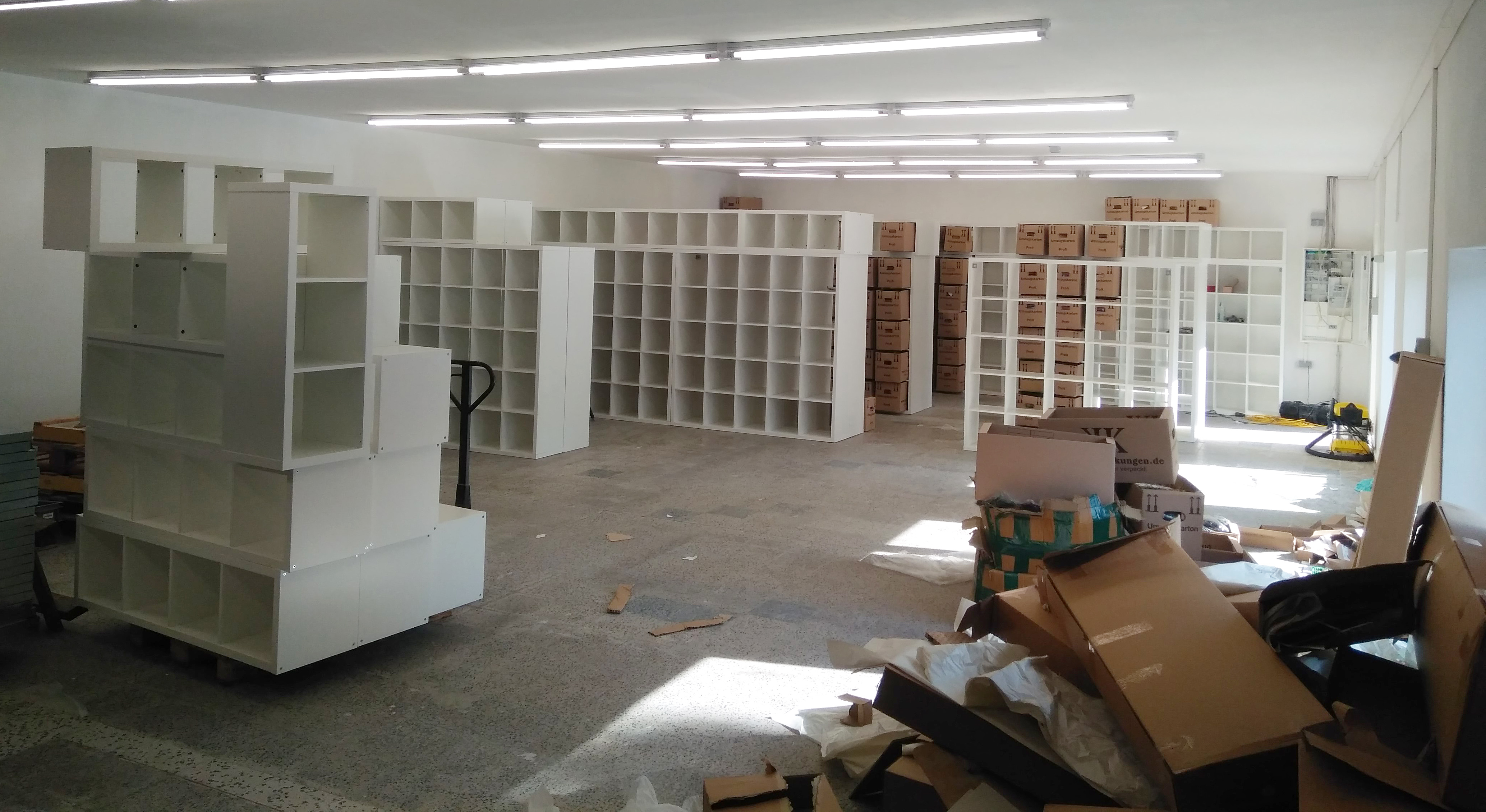 2014 zogen wir aus Dresden heraus, hinter den Speckgürtel dieser wachsenden Stadt mit ihren steigenden Mieten. Wir konnten einen ehemaligen Edeka-Markt erwerben und sanierten ihn eigenhändig. Neue Fenster und Türen rein, Dach reparieren, Elektrik erneuern, Laderampe verbessern, störende Zwischenwände raus und alles streichen. Anderthalb Jahre Arbeit. Außerdem mauerte ich noch ein kleines Lager, worin zusätzlich 12.000 Produkte Platz finden.